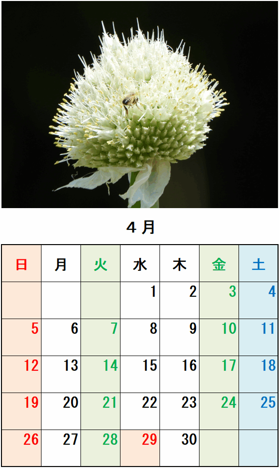 4月のカレンダー