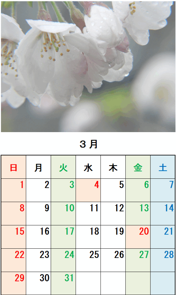 3月のカレンダー