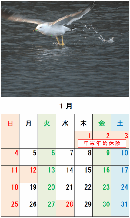 飛び立つ海猫、今年もお正月からグーンと上昇基調になって欲しいですね。さて、海猫とカモメ、どこが違うのでしょうか。海猫は留鳥、日本近海で繁殖しその土地に留まります。日本特有の海鳥ともいえます。くちばしは黄色の先端に黒帯と赤斑。その名のとおりミャーとかアーオとか鳴きます。