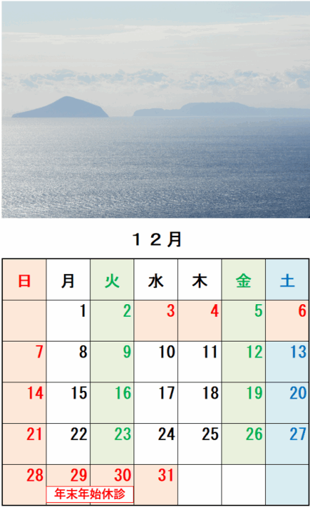 *2 年末年始は12月28日(日)から1月4日(日)まで休診いたします。